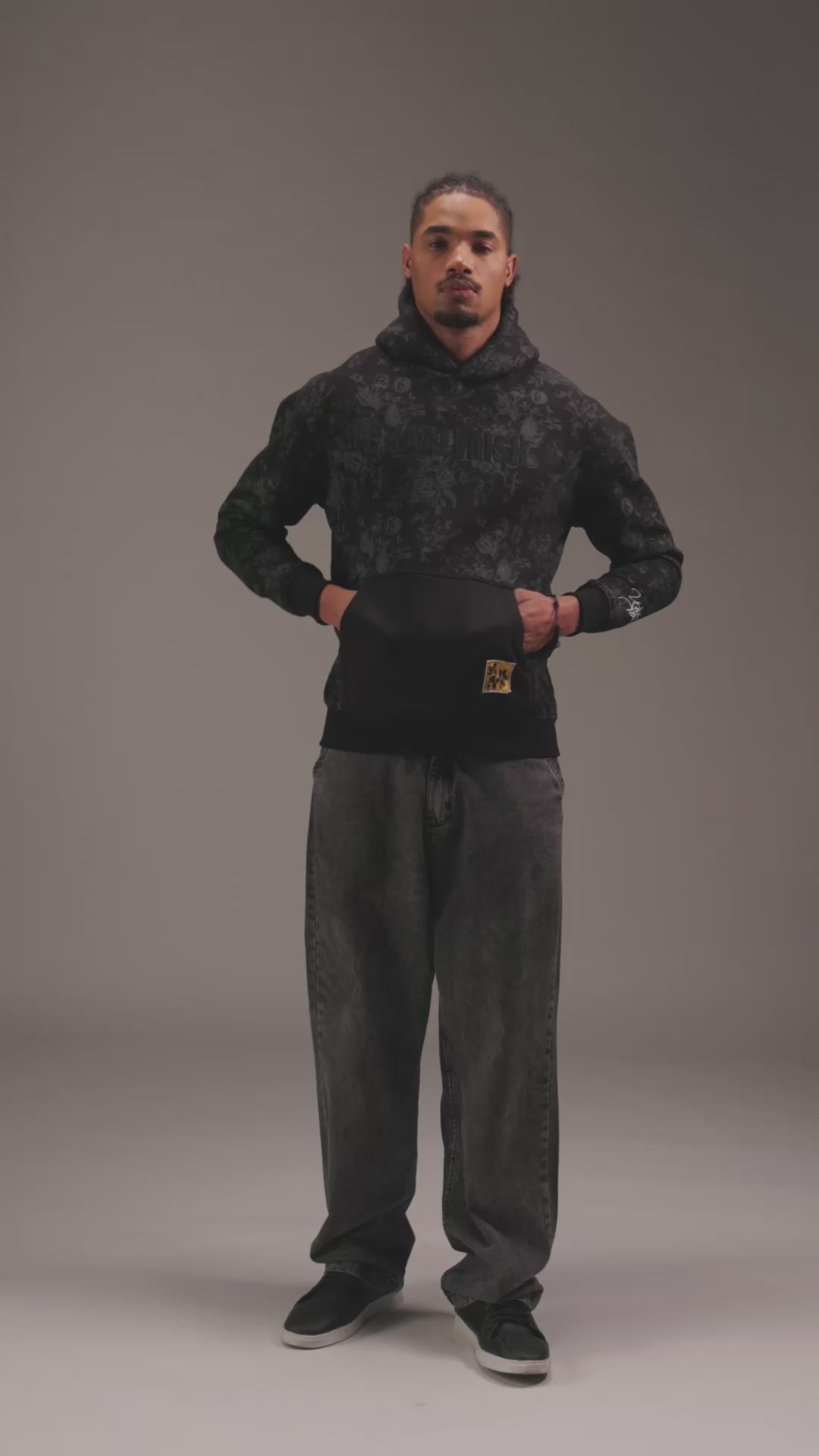 Style it with tailored trousers or layered winter essentials. Let the hoodie stand as a statement of modern luxury, rooted in timeless black.